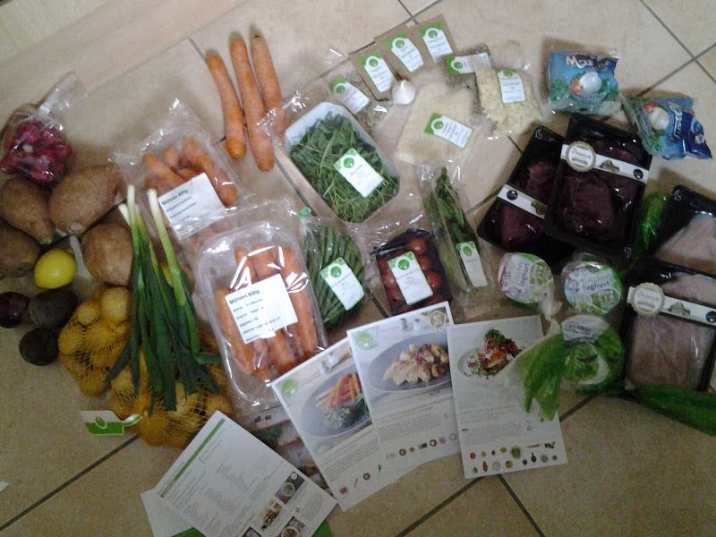 In dieser Kiste ist alles enthalten.....von Fleisch, Gemüse, Gewürzen usw. Auch die Rezepte liegen mit dabei. Man braucht meist nur Kleinigkeiten wie Salz, Pfeffer, Öl usw.