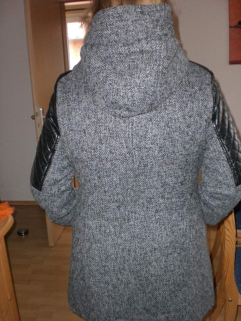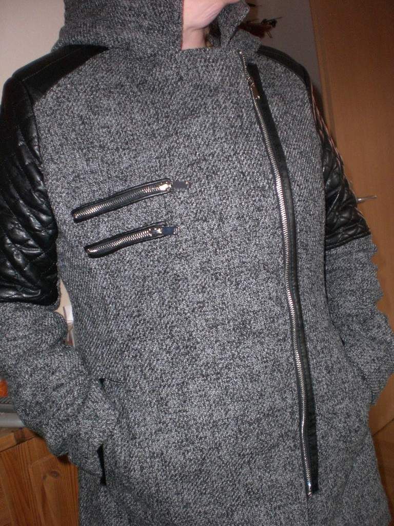 Das gute Stück sitzt perfekt und schmeichelt meiner Figur sehr. Der asymmetrische Reißverschluss macht das ganze richtig chic und modern. Auch der Materialmix aus Lederimitat und Wolle ist einfach Klasse. Der ganze Mantel ist einfach stimmig.