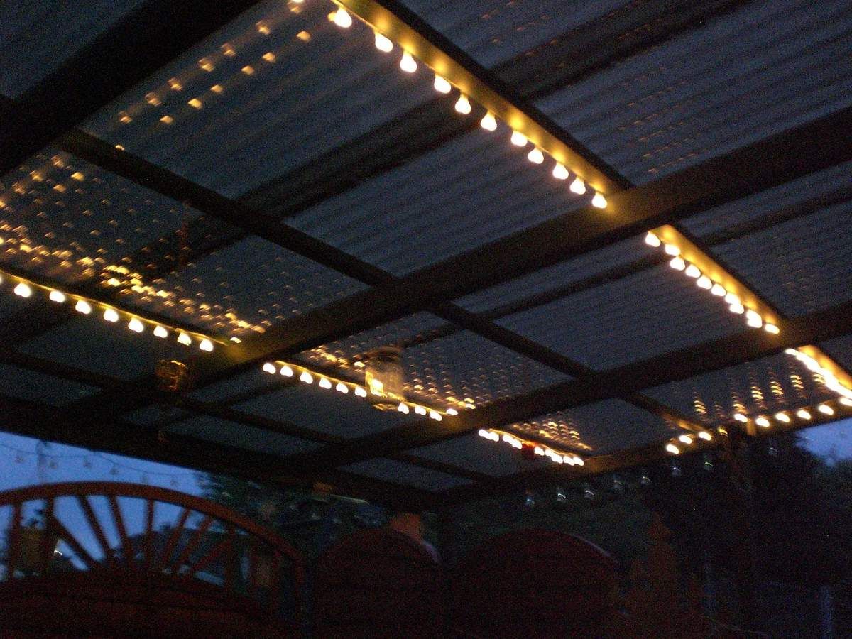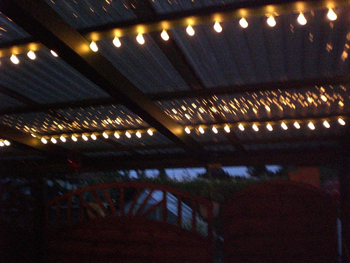 Eigentlich sollte das gute Stück ja in den Wintergarten, aber mein Mann hat sie auf der Terrasse angebracht. Dort passt sie aber auch sehr schön hin. Zum Herbst kommt sie dann aber in einen Raum. So hat man das ganze Jahr Freude daran. Das ist halt der Vorteil, wenn die Lichterkette mit Strom läuft und nicht auf Sonne für das Solarpaneel angewiesen ist.