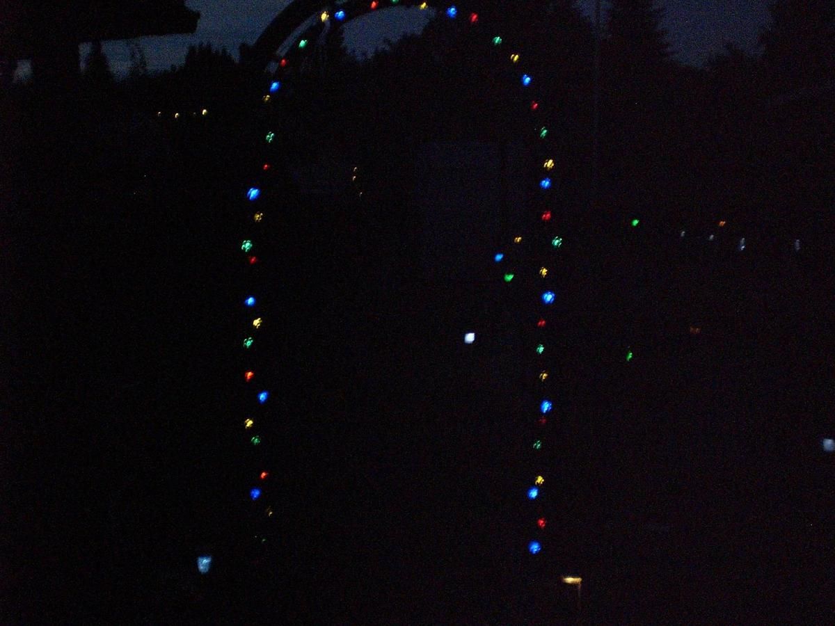 Da die Lichterkette mit der Kraft der Sonne zum Leuchten kommt muss die Solarzelle natürlich an einem hellen Ort angebracht werden. Mein Mann hat das Ganze an unserem Rosenbogen angebracht. Hier kommt die Lichterkette mit ihren bunten Blüten sehr gut zur Geltung.