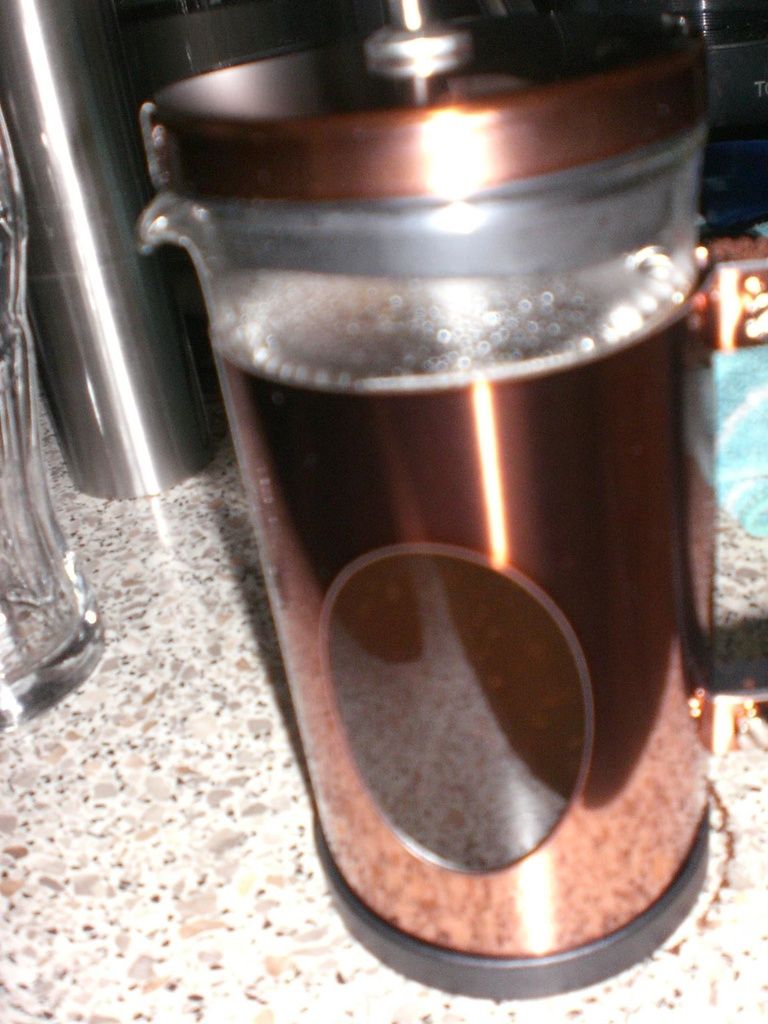 Nun mindestens das ganze 4 Minuten ziehen lassen und dann den Filter nach unten drücken… Fertig… und nun kann der frisch gebrühte Kaffee genossen werden.